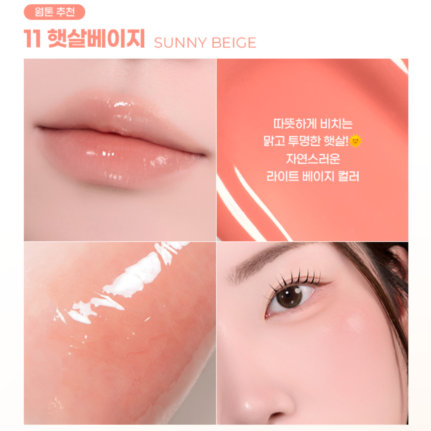 - #11 Sunny Beige NEW: (Warm Tone Recommendation) Bask in a Sunny glow Warm, clear as if getting light. A light beige with the translucent glow of a sunbeam.